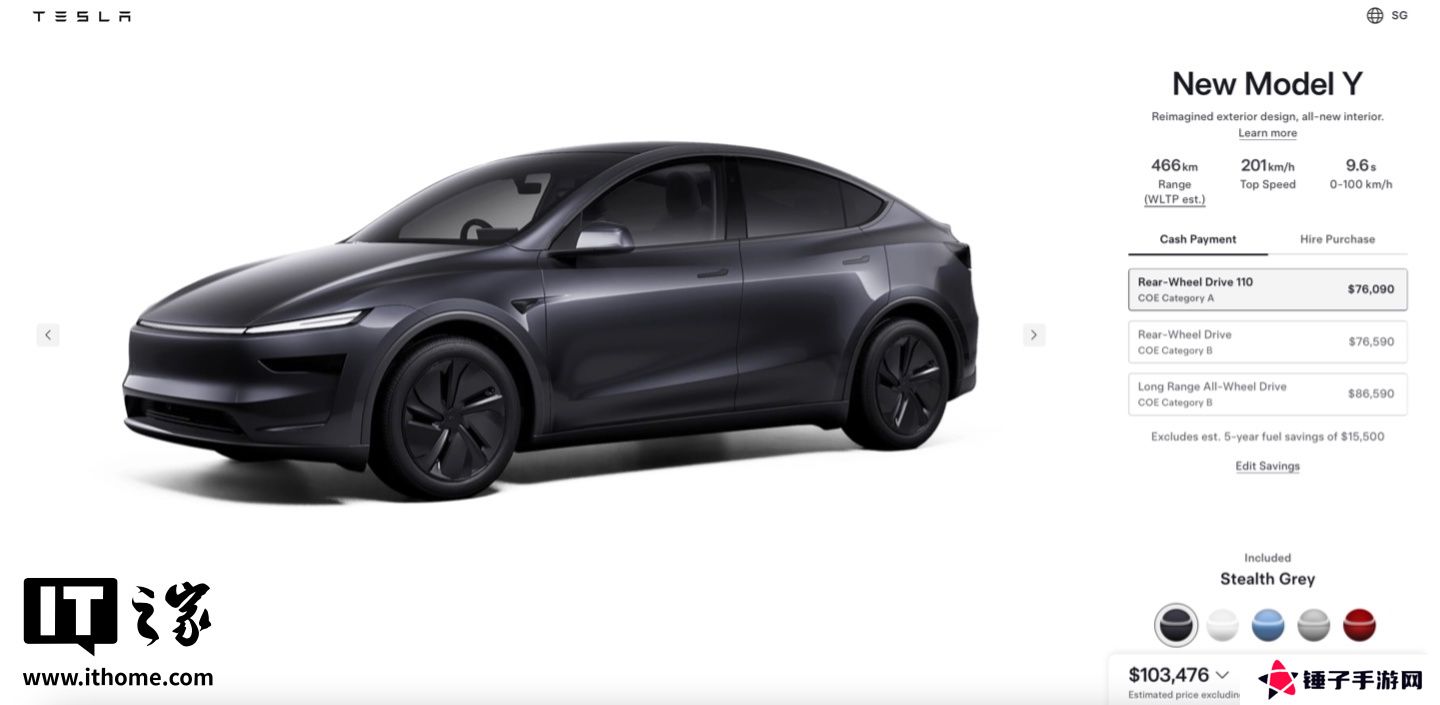 本站 3 月 30 日消息,特斯拉前天在新加坡市场为旗下焕新款Model Y汽车推出了一款“Rear-WheelDrive 110”后轮驱动版本,性能/售价相对现款标准款后轮驱动版更低,该版本车型专为新加坡相关法律法规设计,主要就是为了绕过新加坡有关部门设置的“动力税”。